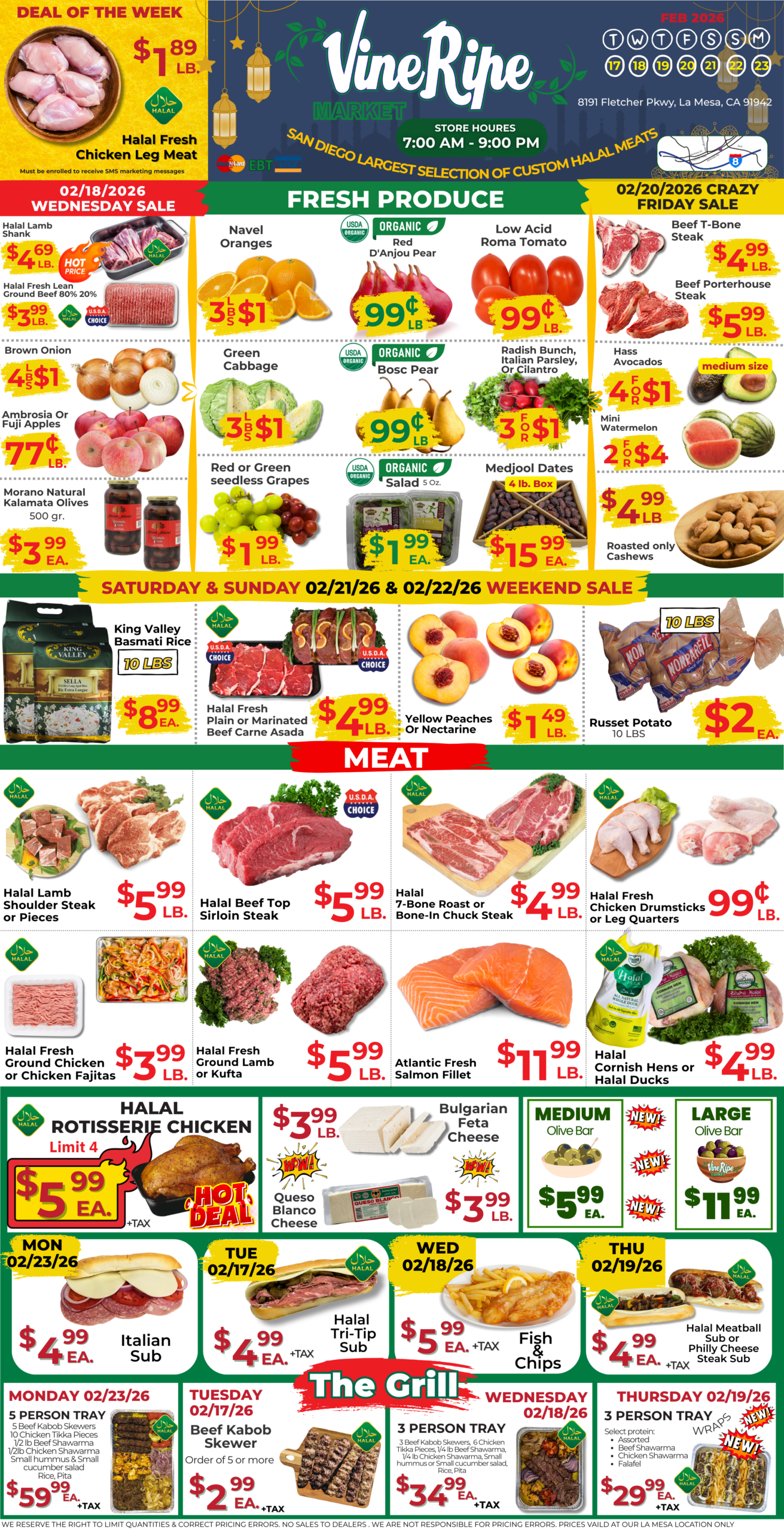 HOURS OF OPERATION : 7:00 AM – 9:00 PM